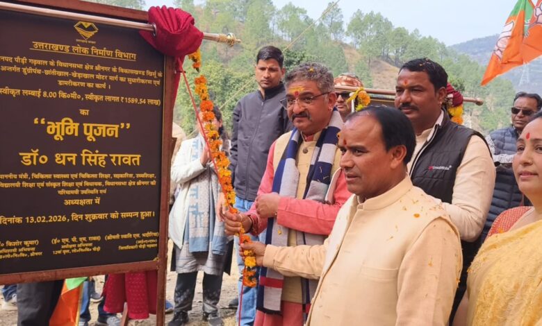 इसके बाद मंत्री ने विकासखंड खिर्सू के अंतर्गत 1589.54 लाख की लागत से डुंगरीपंथ–छांतीखाल–खेड़ाखाल मोटर मार्ग के सुधारीकरण एवं डामरीकरण कार्य का विधिवत भूमि पूजन किया। साथ ही 156.39 लाख की लागत से डुंगरीपंथ–छांतीखाल मोटर मार्ग से तल्ली कफोली तक ग्रामीण मोटर मार्ग निर्माण (स्टेज-1) का शिलान्यास भी किया गया। मंत्री ने कहा कि इन विकास कार्यों से क्षेत्र में आवागमन सुगम होगा, ग्रामीणों को बेहतर सुविधा मिलेगी तथा सामाजिक एवं आर्थिक विकास को गति मिलेगी।