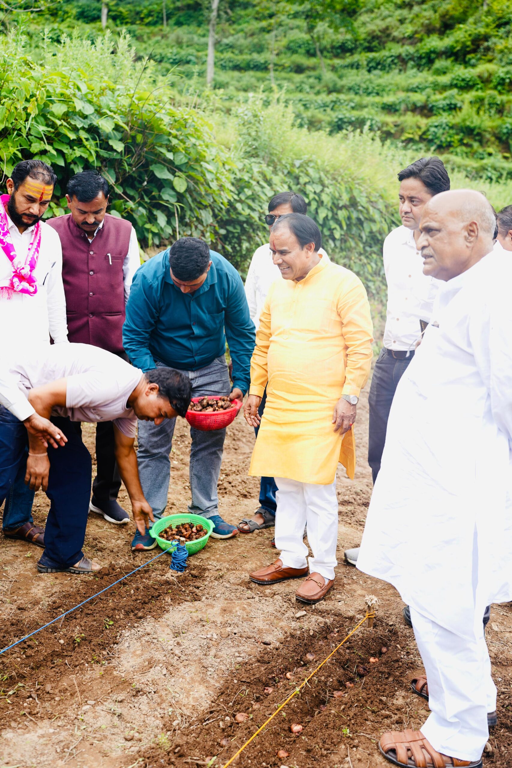 माननीय सहकारिता मंत्री डॉ धन सिंह रावत द्वारा बीज रोपण कर सामूहिक सहकारी खेती योजना का किया गया शुभारंभ